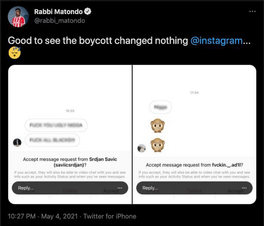 The simple, unfortunate reality is that it hasn’t. In this first week since the boycott, we have already seen abuse resurfacing. Wales winger Rabbi Matondo, who is on loan at Stoke City from Schalke, shared examples of racist abuse he’s received since the weekend. Matondo has already been in the news this season in relation to this issue, having shared abuse he received during March’s international break. Raheem Sterling also received racist abuse in the wake of Manchester City’s Champions League victory over PSG, less than 48 hours after the boycott came to an end.